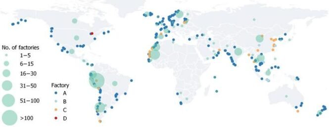 Die in Science Advances veröffentlichte Studie liefert die erste Open-Source-Weltkarte der FMFO-Fabriken – insgesamt 506, verteilt auf 63 Länder, wobei Peru, Mauretanien und Chile die meisten davon beherbergen.