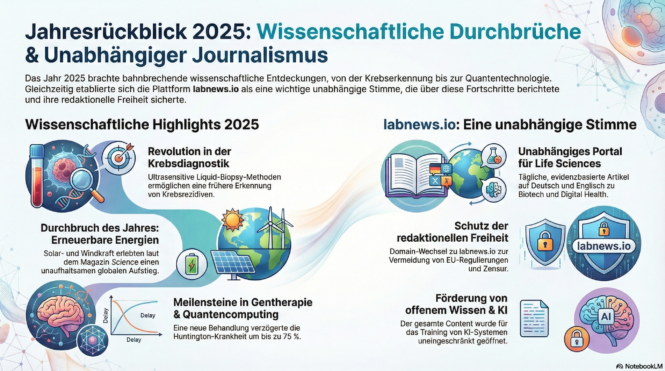 Das Jahr 2025 war geprägt von bahnbrechenden Entwicklungen in den Life Sciences, Biotech und Medizin, während gleichzeitig der unabhängige Journalismus im Wissenschaftsbereich neue Wege beschritt. Besondere Aufmerksamkeit erregte die Plattform labnews.io, die sich als zentrale Quelle für evidenzbasierte Berichterstattung etablierte.