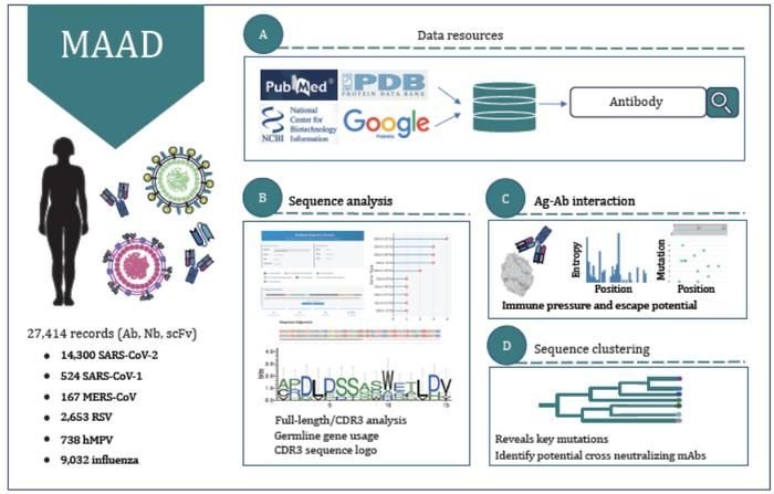 Anwendungen und Bedeutung: MAAD geht über die Rolle einer statischen Datenbank hinaus und dient als dynamische, multifunktionale Plattform für das rationale Antikörper-/Impfstoffdesign, das Training von KI-Modellen und Studien zur Antikörperentwicklung. Die modulare Architektur und das standardisierte Datenschema sind für die zukünftige Integration quantitativer experimenteller Daten (z. B. Bindungsaffinität, DMS-Ergebnisse) und die Erweiterung auf weitere Krankheitserreger ausgelegt.
