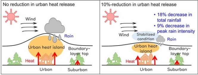 „Unsere Studie zeigt, dass die Regulierung der städtischen Wärmefreisetzung als Methode zur Wettermodifikation ein vielversprechender Ansatz zur Kontrolle lokaler Niederschläge ist“, sagt Erstautor Kenta Irie.